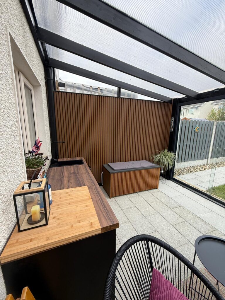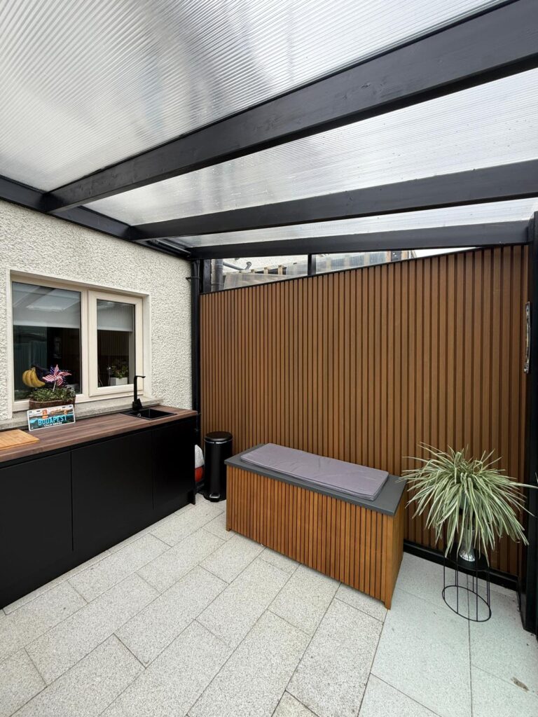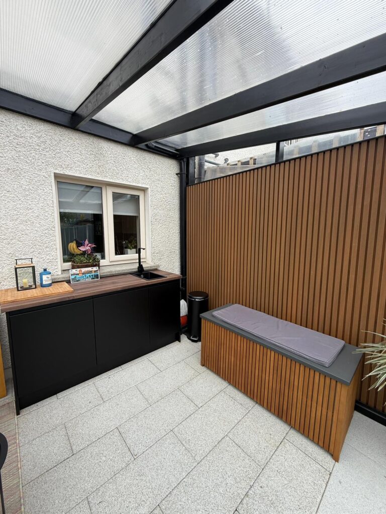 In Ireland, many homes have limited utility space indoors. By relocating the laundry to a pergola extension, homeowners can: